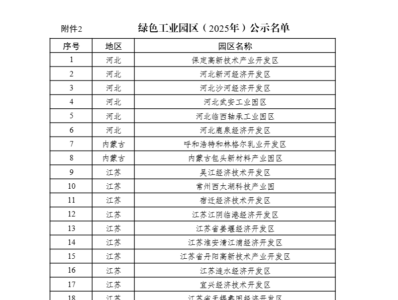 綠色工廠(chǎng)、綠色工業(yè)園區(qū)(2025年)名單公示