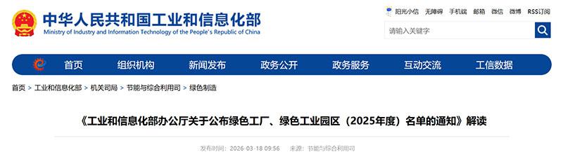 《工業(yè)和信息化部辦公廳關(guān)于公布綠色工廠、綠色工業(yè)園區(qū)(2025年度)名單的通知》解讀