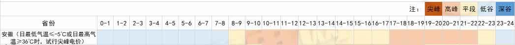 安徽省工商業(yè)用戶電價及尖峰平谷時段劃分段